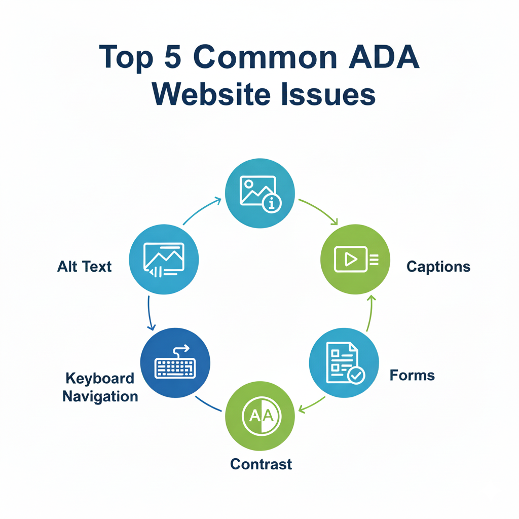 Industries like retail, e-commerce, education, and hospitality are frequent targets. Plaintiffs typically cite barriers such as missing alt text, inaccessible forms, or videos without captions—classic common ADA compliance issues.